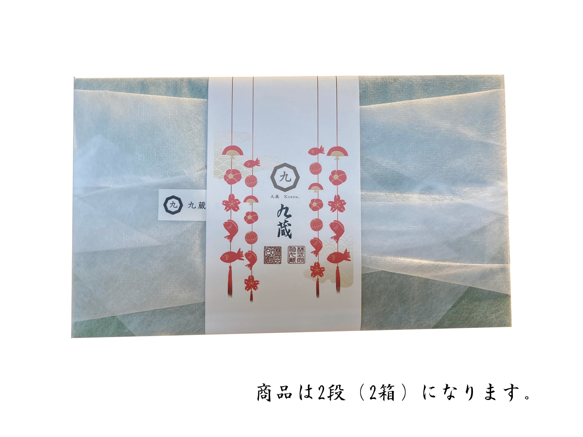 九蔵オリジナルのサブせんや胡麻せんなどの焼き菓子詰め合わせ折り箱でございます。